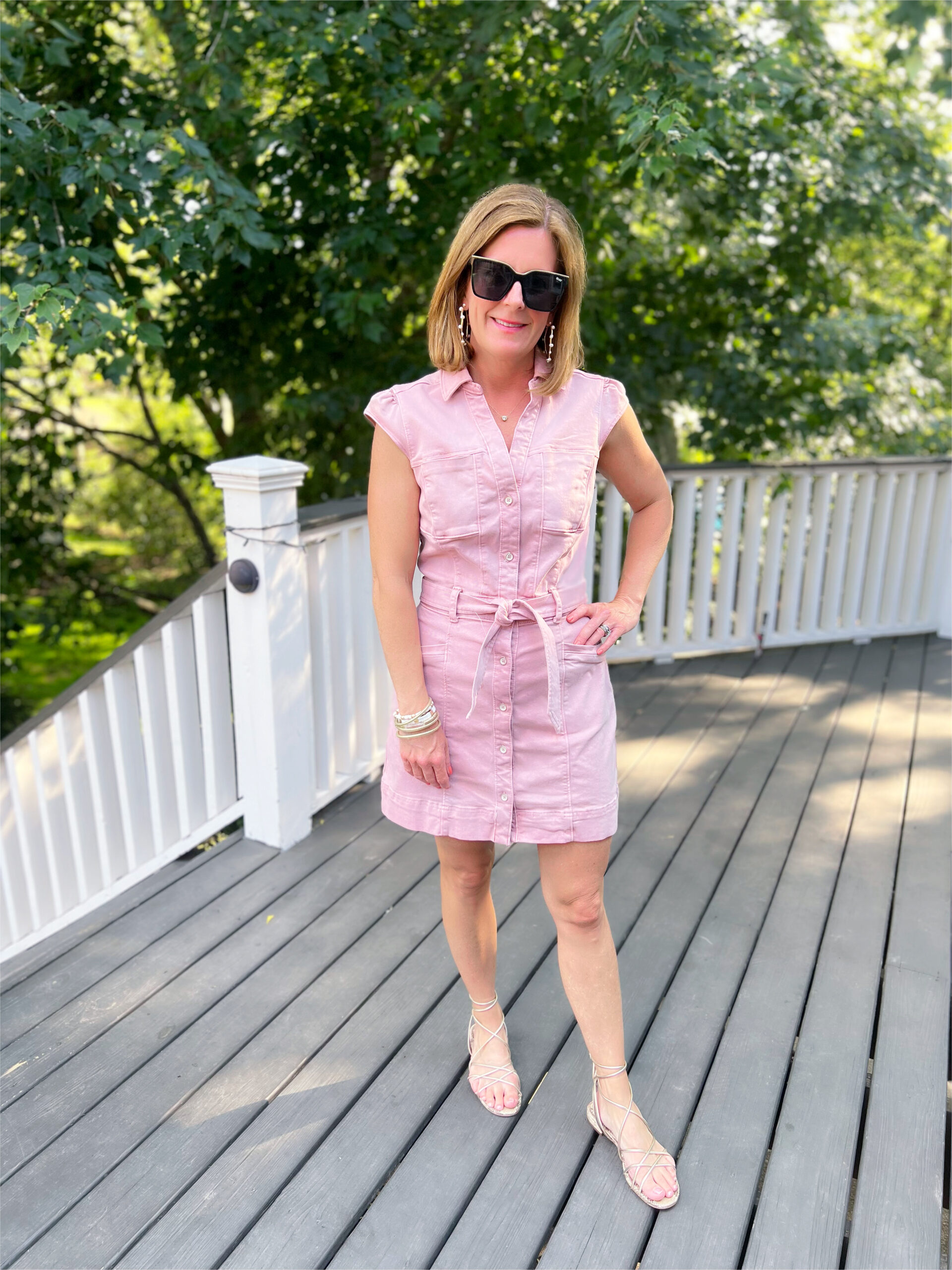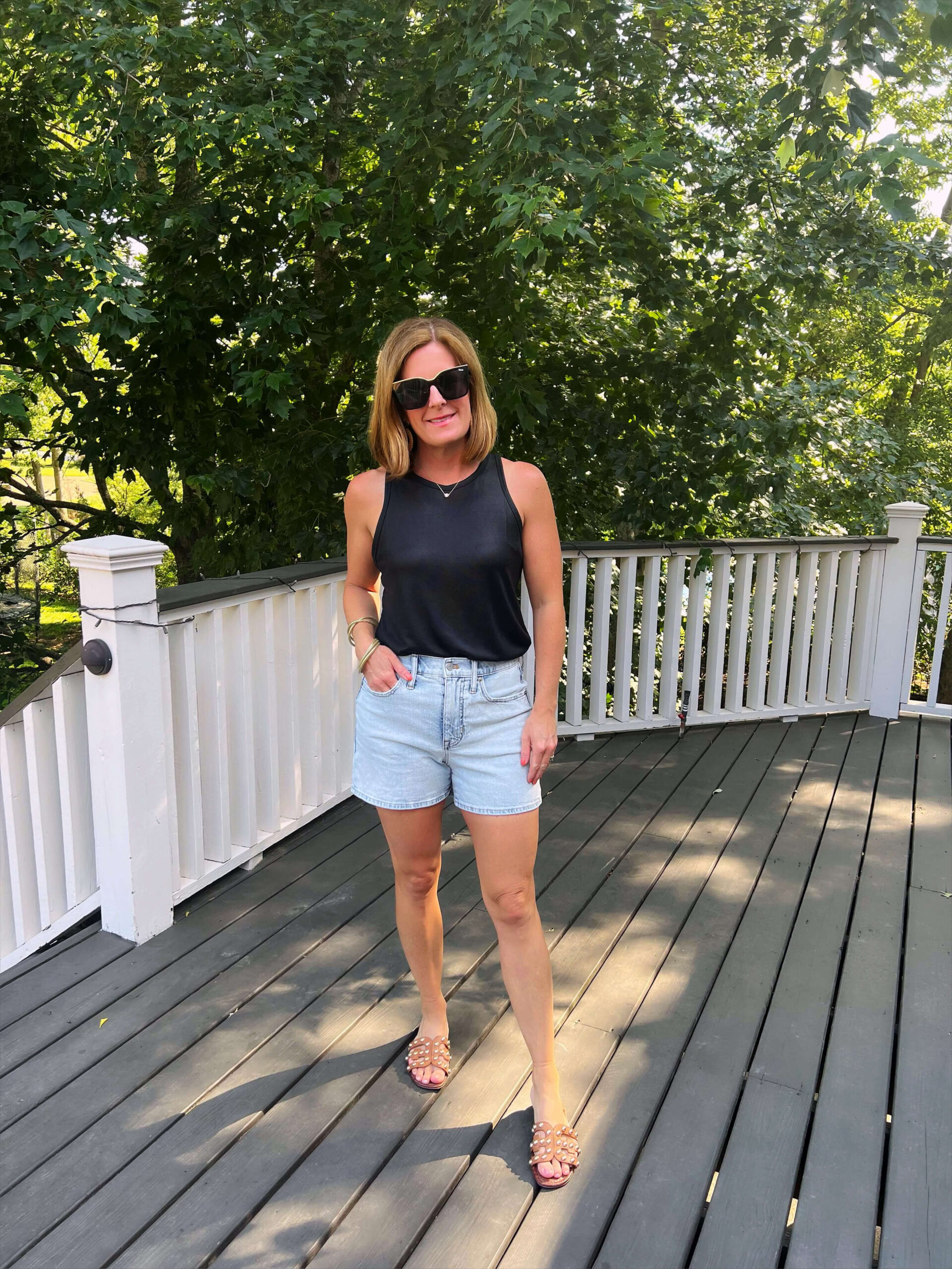 The second article of clothing that makes dressing stylishly for summer easy is a pair of jean shorts. Let’s go ahead and address one of the #1 questions we get…. YES, you can wear jean shorts in your 40s, 50s, and beyond! No matter your age though, it is important to find that perfect pair of jean shorts that meet your criteria – and it needs to be a pair you love to grab and wear. They can be distressed or not, high rise or mid, short or longer…. It’s whatever is flattering to your body and that you feel confident in. Here are some of our team’s tried and true jean shorts that span a range of styles!