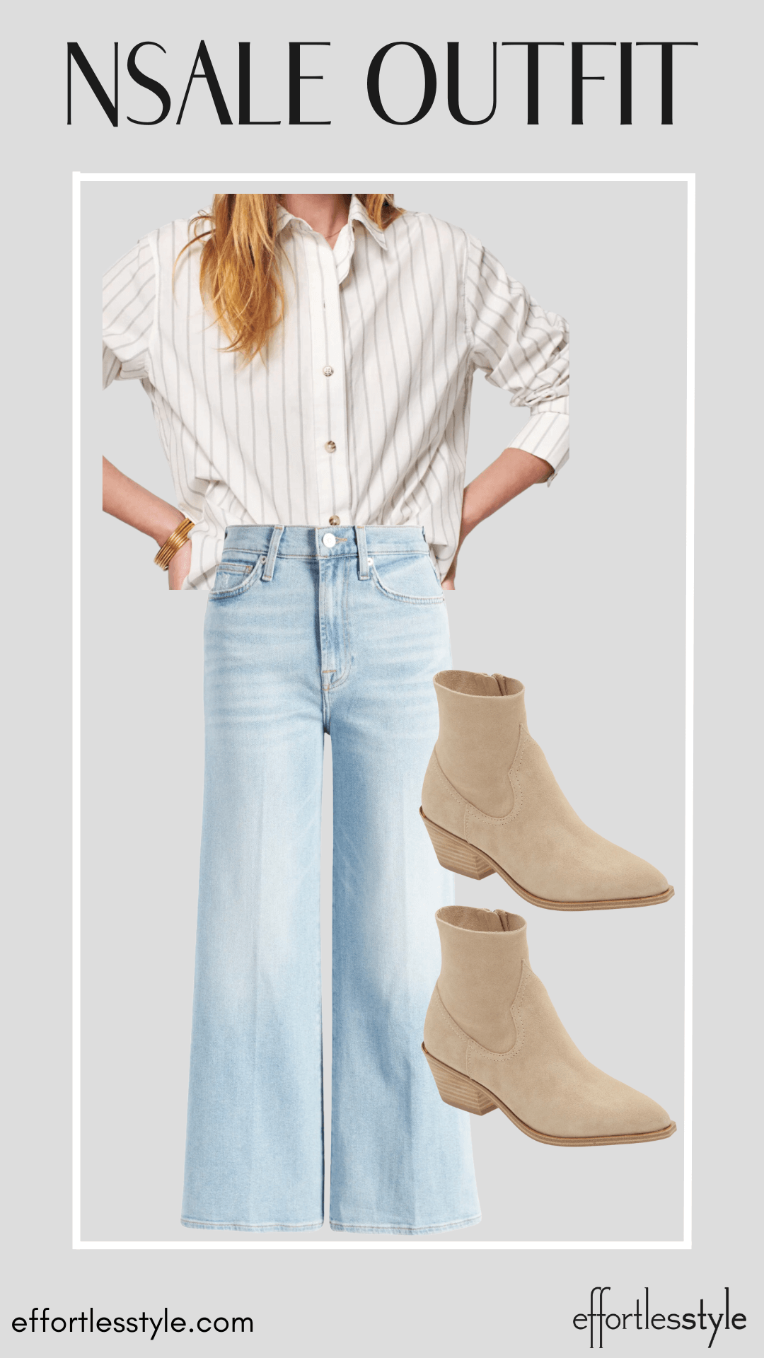 We love a striped button-up, and this one is fabulous! There are so many ways to wear a classic piece like this. Here are a few ways to style a good striped button-up shirt for fall… All with items from the NSale!