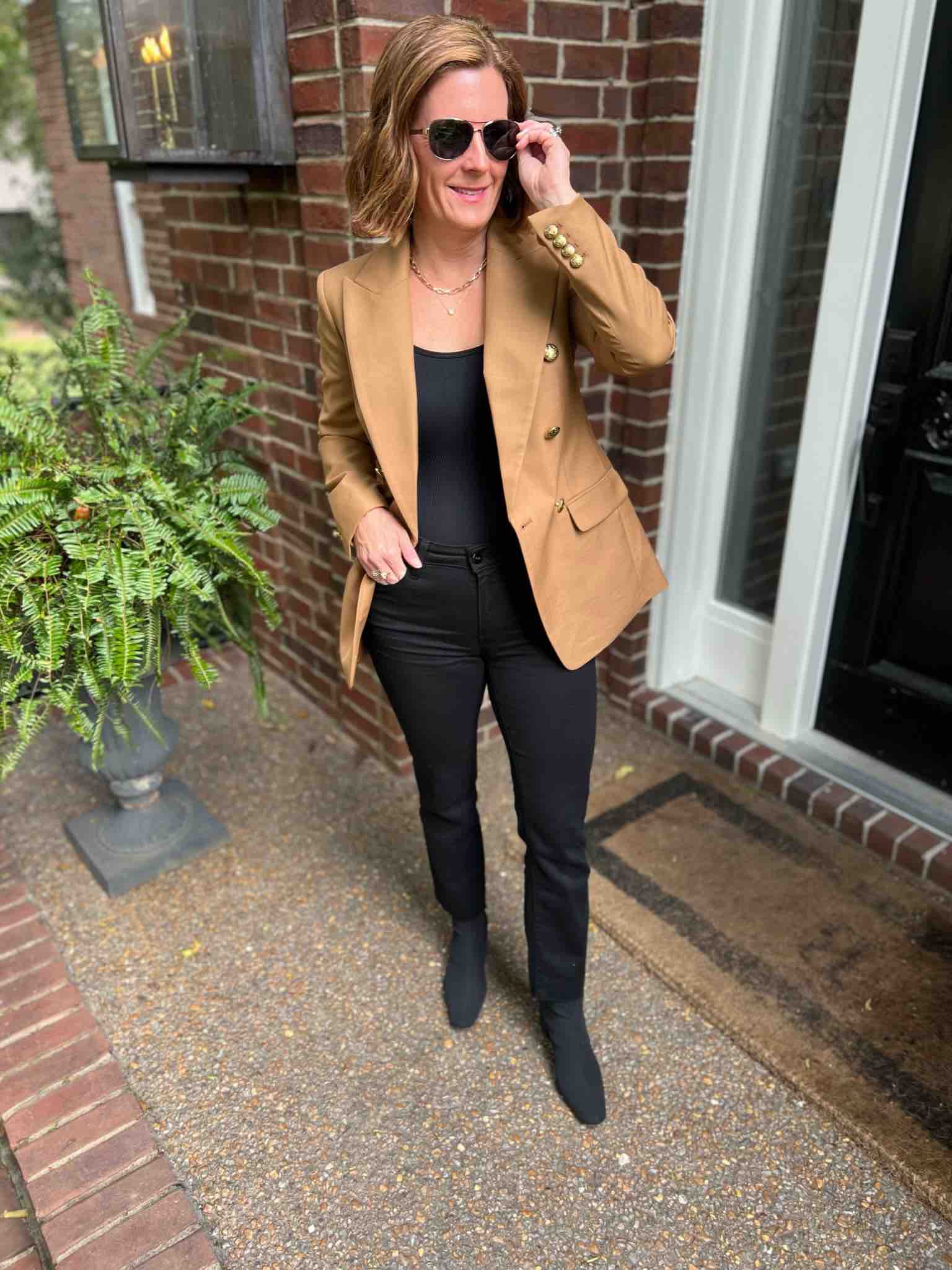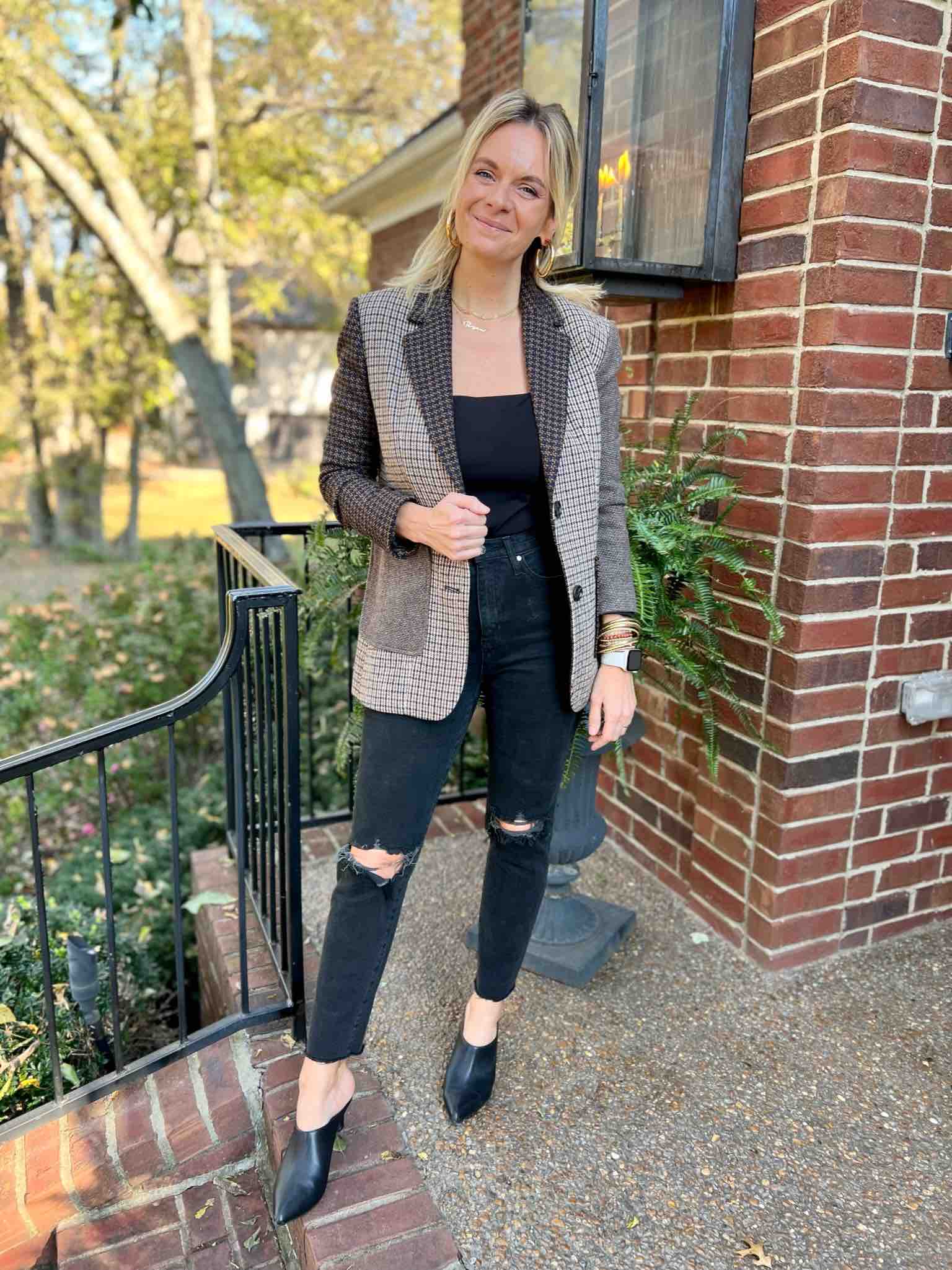 Blazer & Black Jeans & Booties | Blazer & Black Jeans & Heeled Mules | Blazer & Black Jeans & Slingbacks | Blazer & Jeans & Heels