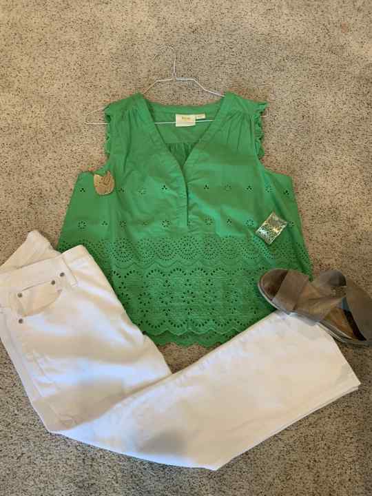 A solid boldly colored top creates an open palette for style creativity. You can of course keep it simple with white jeans, cutoffs, or an olive utility skirt. Or, you can add more color and/or pattern with a fun skirt or pair of shorts.