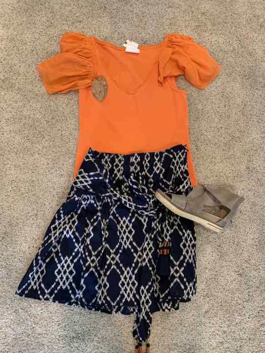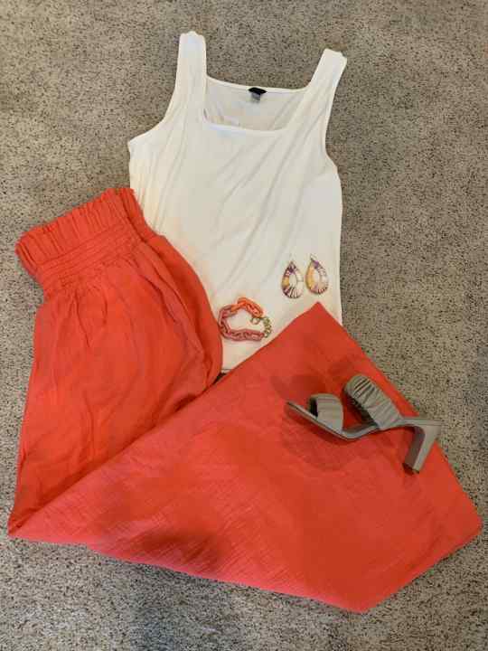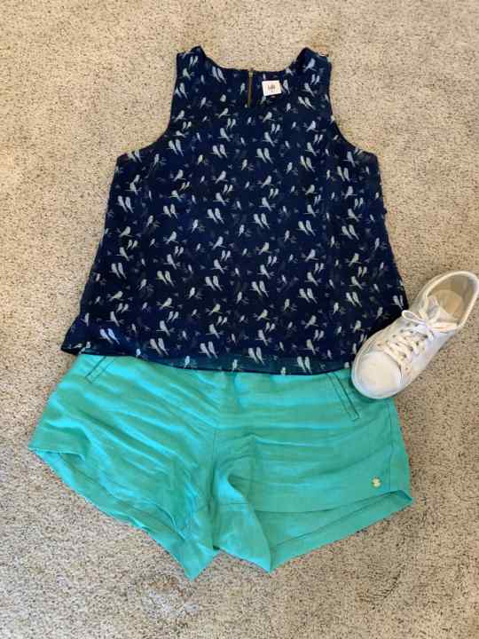 And if your top is patterned, jeans or denim shorts are without a doubt a good choice. But, you don’t necessarily have to keep your bottom neutral. Depending on how willing to wear bold color you are, you could also pull one of the fun colors in your pattern with a solid short. For example, a red, orange, yellow, or green short or pant would ALL be fabulous here!