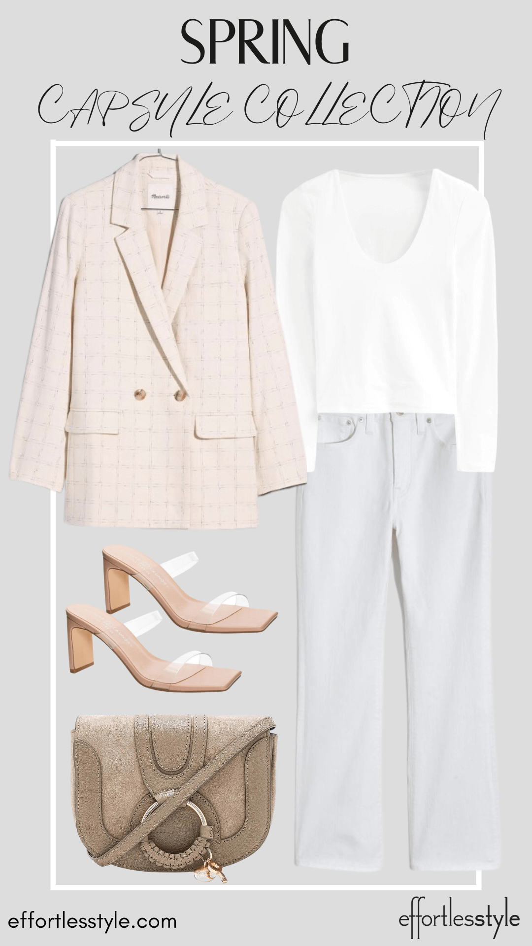 Neutral Blazer & Short Sleeve Tee & Denim Shorts | Neutral Blazer & Long Sleeve Tee & White Jeans