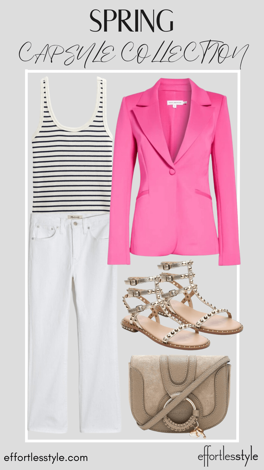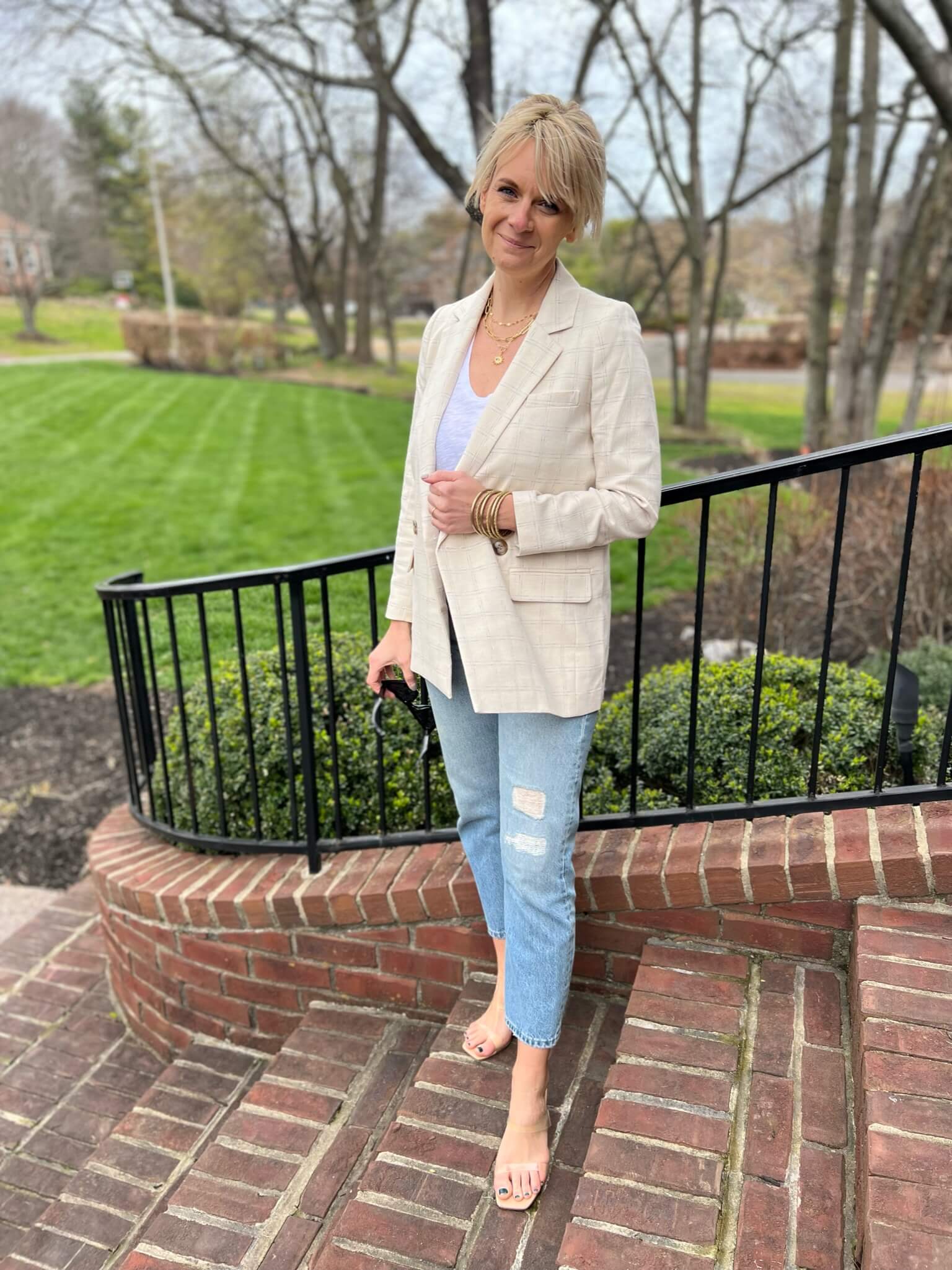 Neutral Blazer & Cami & Light Wash Jeans | Neutral Blazer & Solid Blouse & White Jeans