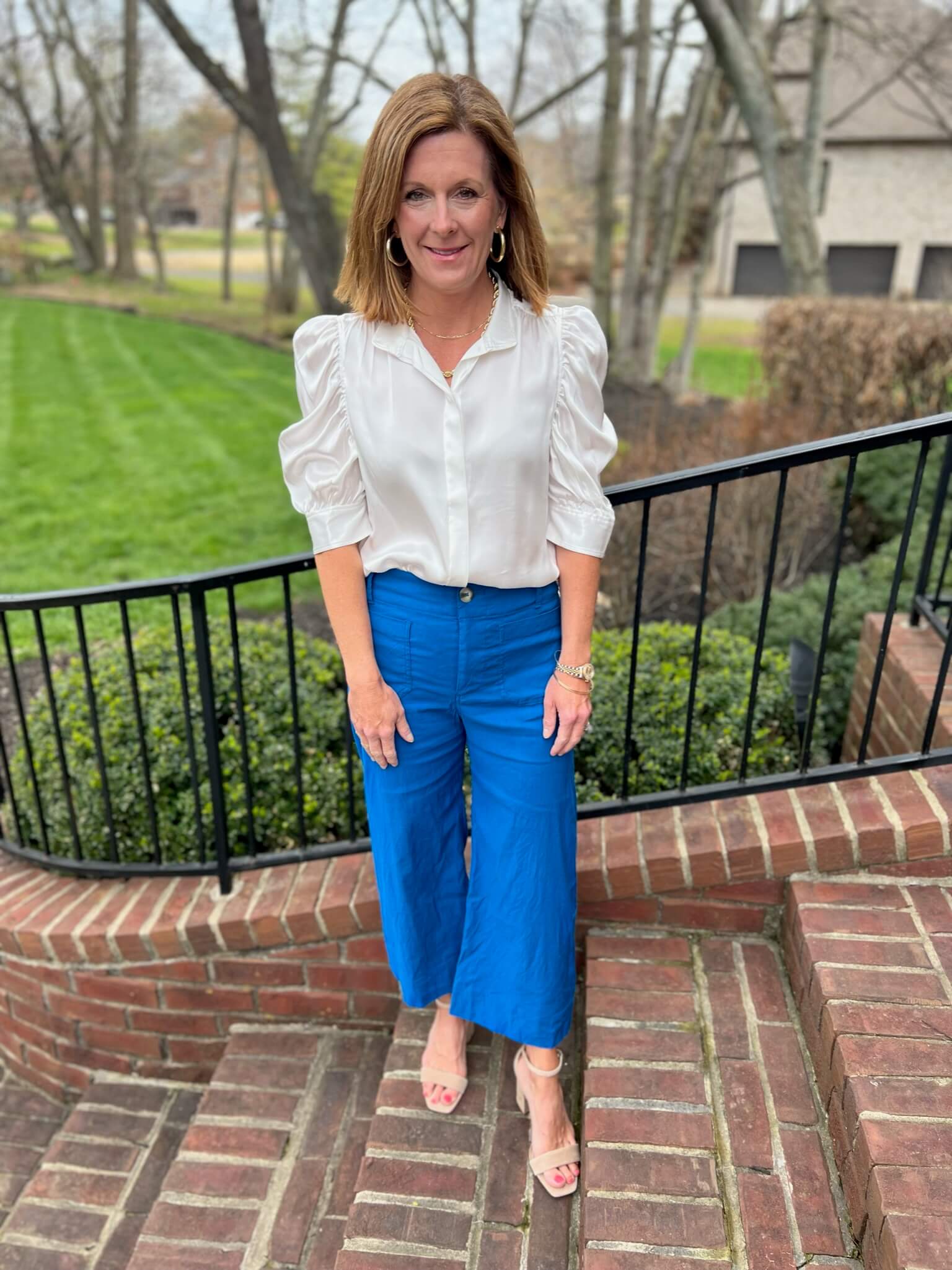 This short sleeve blouse has become a go-to piece for us and our clients. We put this blouse in black in last year’s Spring Capsule and have just truly fallen in love with it. The ivory colorway is versatile for spring as well, and perfect for this particular grouping!