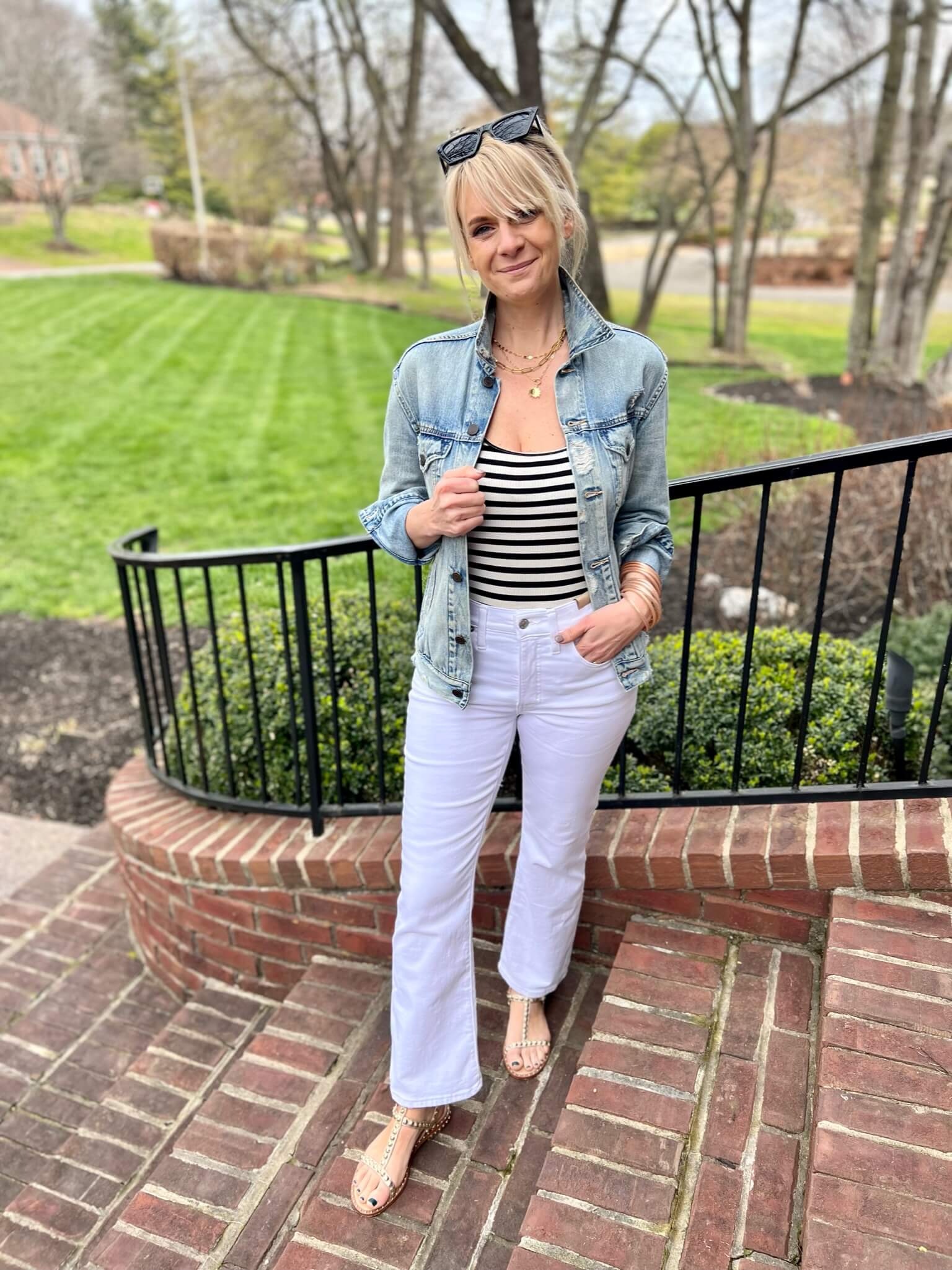 Striped Tank & Wide Leg Pants | Striped Tank & Statement Blazer & White Jeans