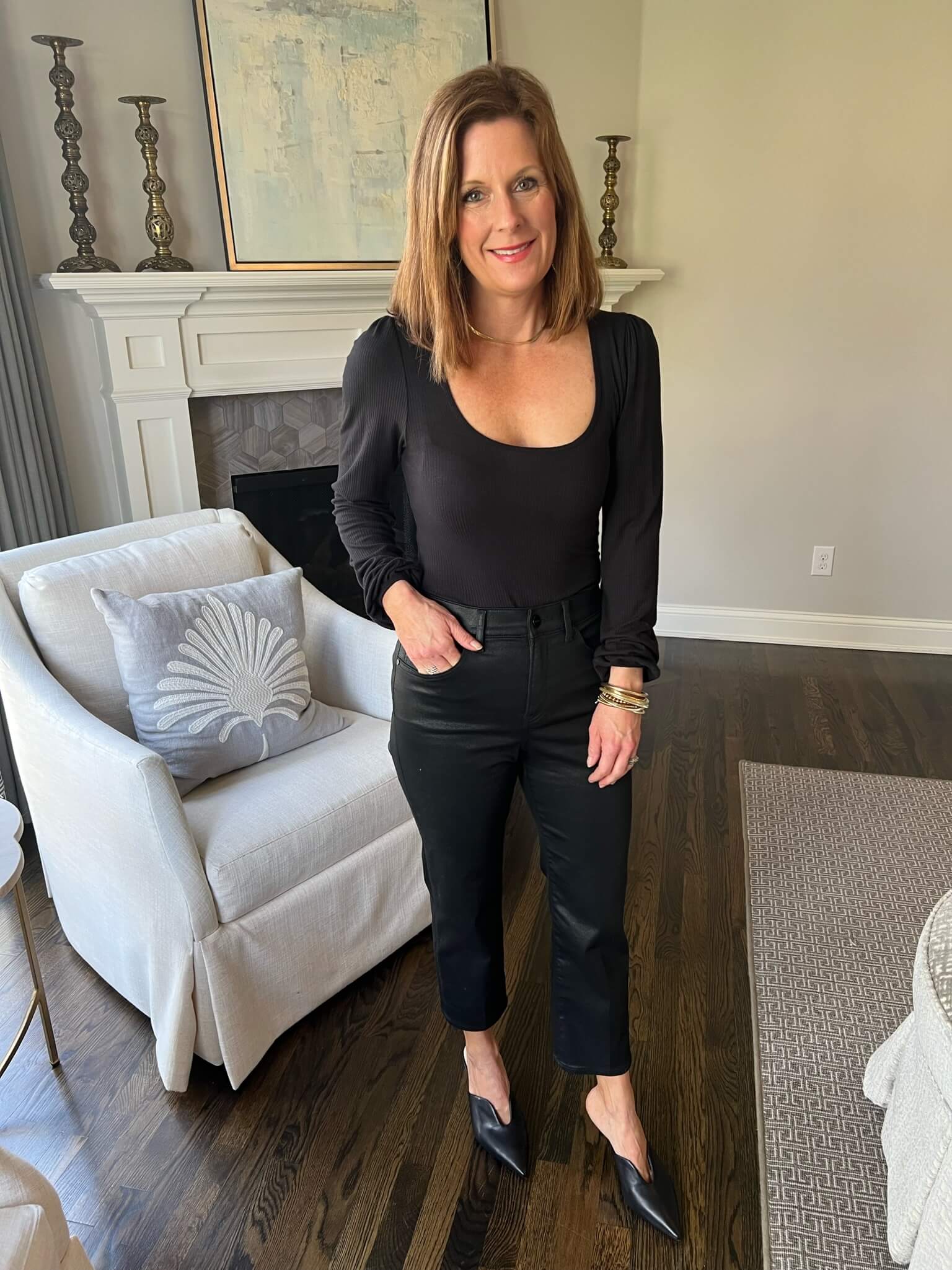 Black Bodysuit & Black Jeans | White Bodysuit & Midi Skirt | Faux Leather Bodysuit & Black Jeans
