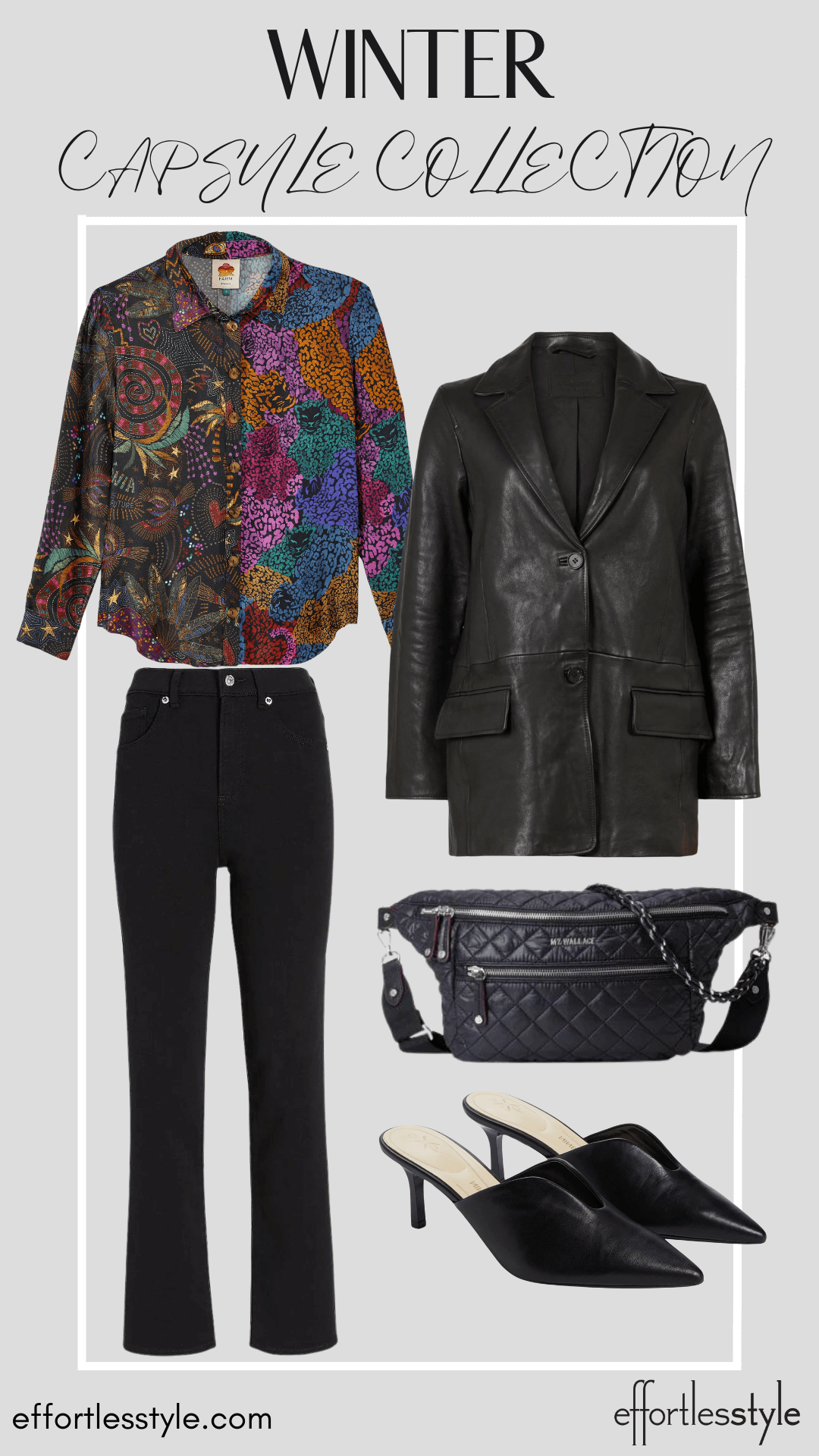 There are so many ways to style a printed blouse like this one! And the colors in this blouse are unreal. The rich jewel tones and magentas are perfect for the season and add gorgeous pops of color to this capsule.