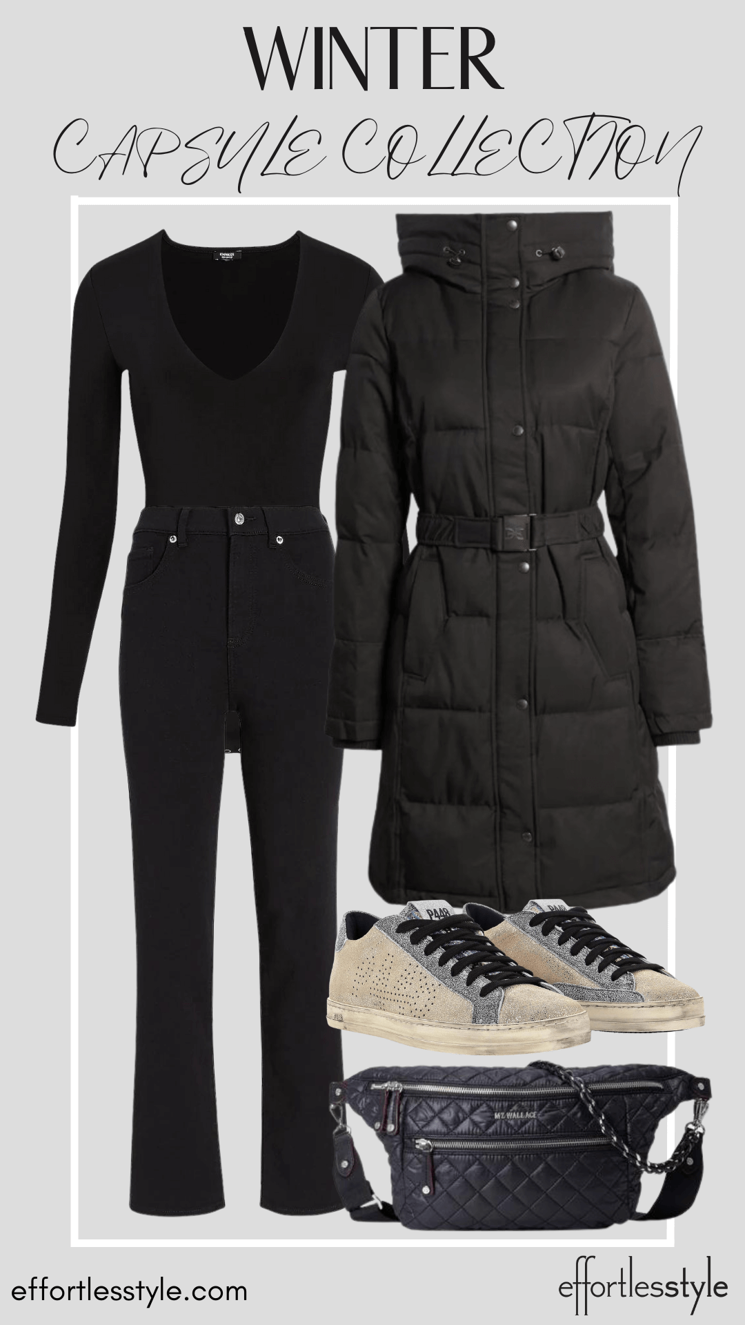 It goes without saying that all winter wardrobes need a casual black coat that is very warm. We love the silhouette on this puffer coat! It isn’t bulky… It’s a slim cut… And the belt around the waist adds even more definition to your shape.