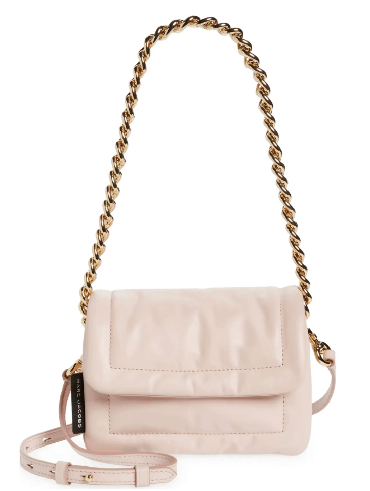 We love this slightly puffed leather crossbody that also has a shorter chain strap… And so do you guys! This is a fantastic bag in any of the colorways offered!