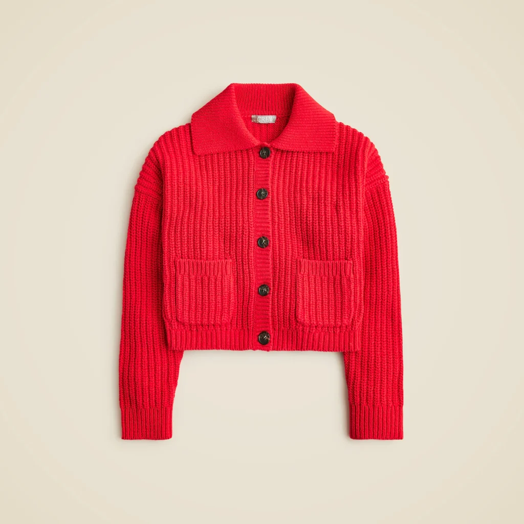 Cardigans seem to be in every store this fall, and I love JCrew’s chunky version with a collar. This red is so fun….the perfect way to cheer up a gloomy fall day!