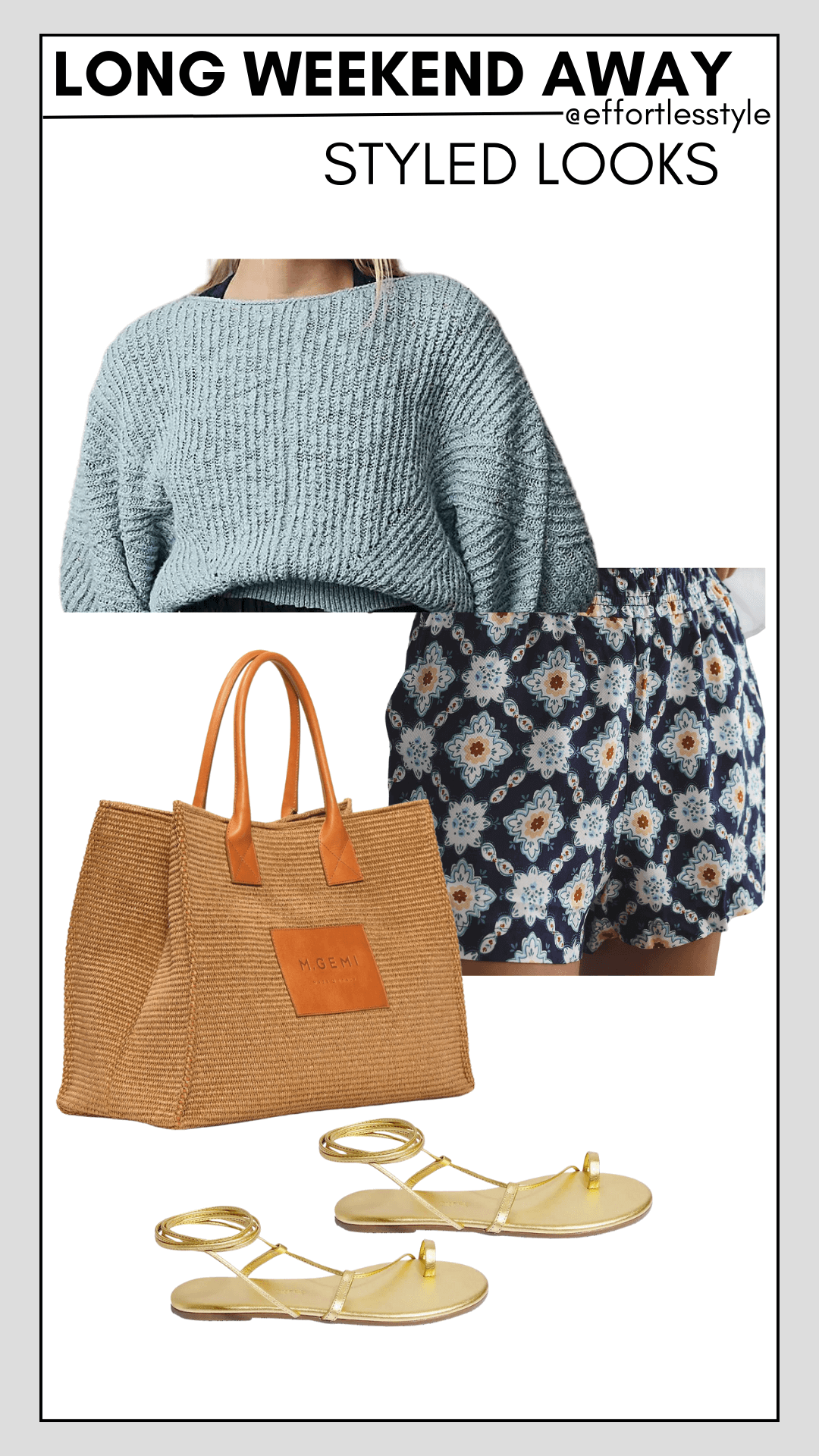 A pair of printed shorts is a summer essential. This pair from Anthropologie is one of our long standing favorite pairs for summer! There are so many fun ways to style these shorts for a long weekend away… Of course, that white button-up shirt elevates the shorts! Or, you can keep it more casual with a simple white tank. Don’t be afraid to mix patterns either – we love a striped tank with this floral pattern. And every long weekend away in the summer requires a cozy, slouchy sweater (obviously) – the one we are showing below pairs beautifully with these printed shorts for a put together yet comfy look.