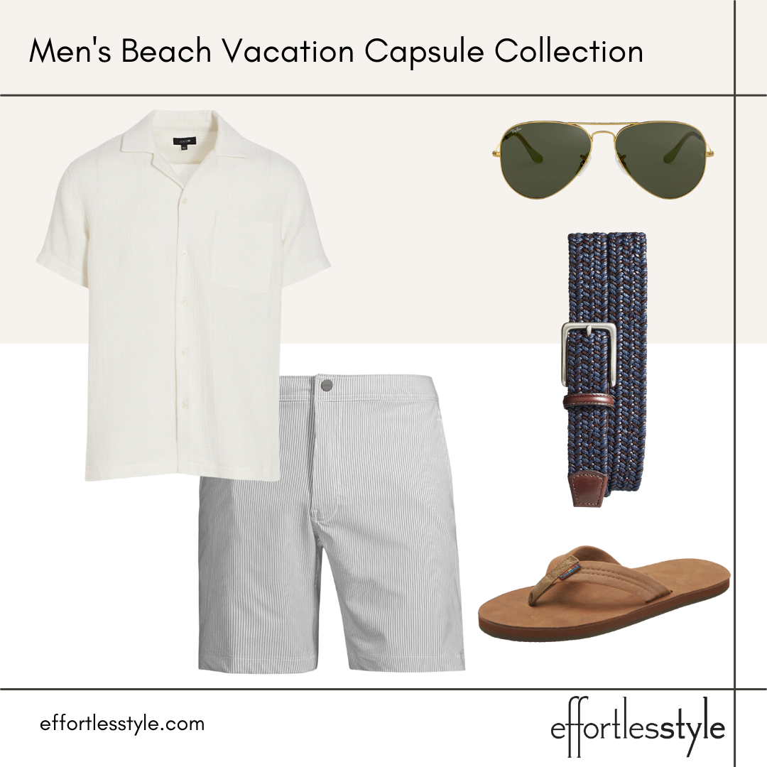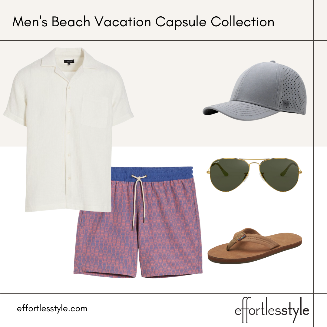 Last week, we released our Men’s Beach Vacation Capsule Collection. Since then, we have spent some time putting together some fun styled looks for you guys using the pieces from that collection. It goes to show – you really don’t need to pack a ton of stuff to have a lot of different outfits to wear…. IF you are intentional about what goes in that suitcase! Let’s take a look at some of our Men’s Beach Vacation Capsule Collection styled looks!