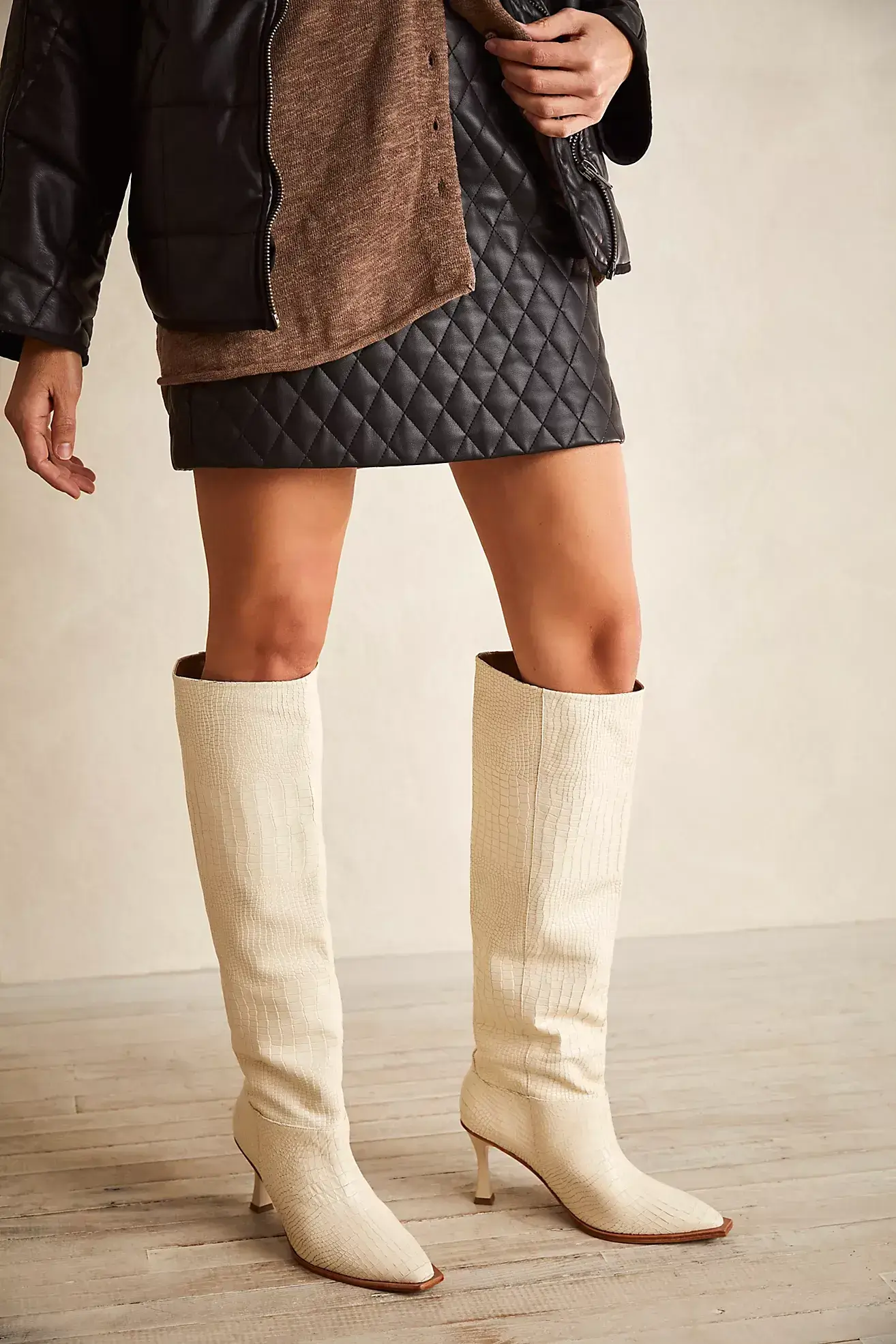 Boot season is here, and I am of course ready for it!  I love the croc detail on this pair that is perfect for pairing with dresses and skirts!  This boot actually comes in half a dozen hues, but I am loving the ivory in particular.