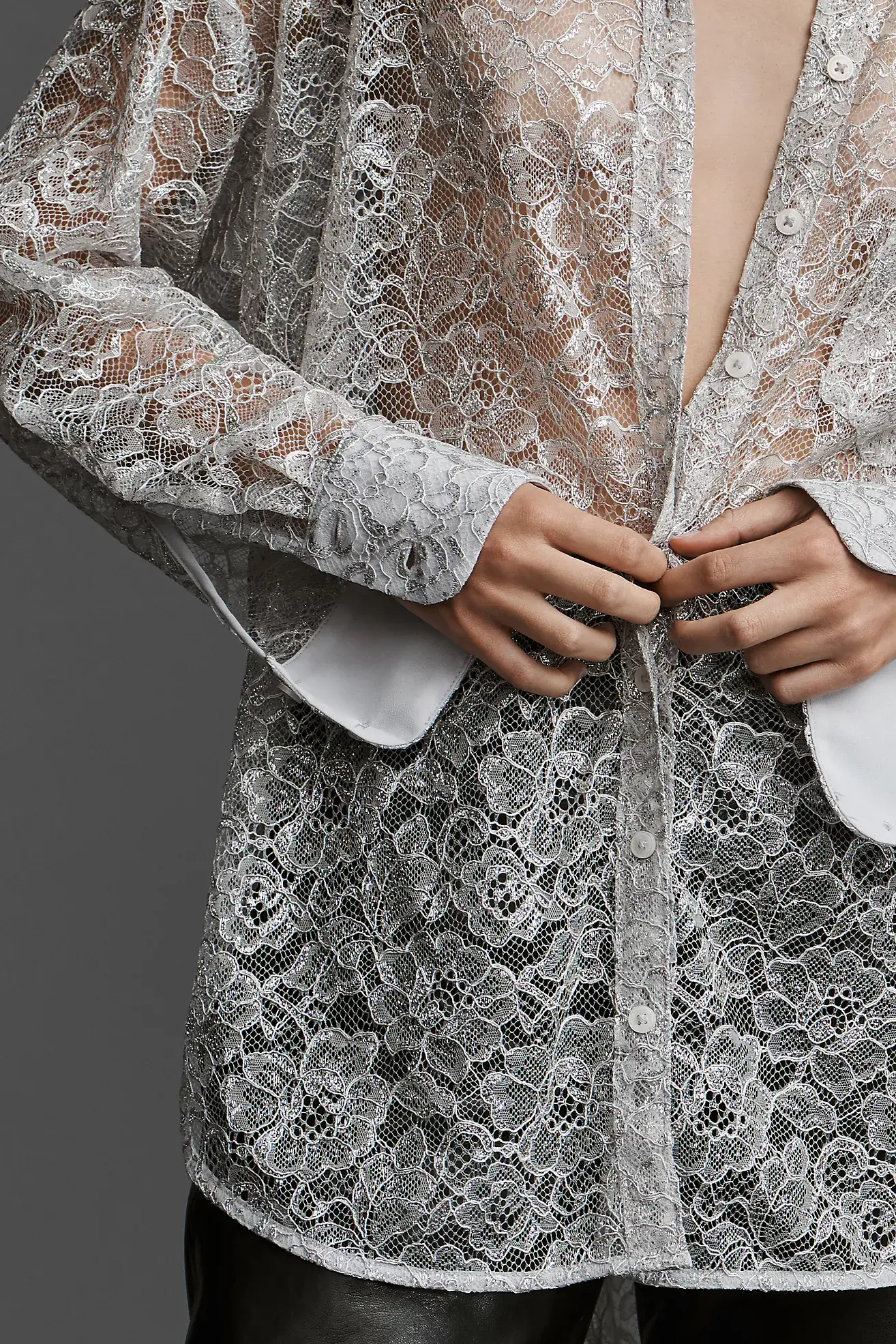 Metallic Lace Blouse {Petite & Plus Sizing}