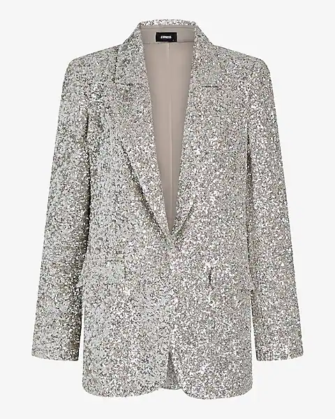 I love a good sequin blazer this time of year, and this silver one is definitely on trend! I am loving the idea of it paired with silver jeans (see below for two really great pairs) for a chic monochromatic look… But I also love how it’s styled in the stock photo with a simple distressed boyfriend jean!