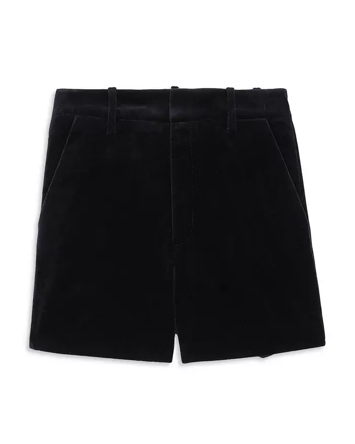 These velvet shorts are a nice alternative to a skirt. One option would be to pair them with a sheer lace blouse and sheer black tights. Add a black stiletto and gold jewelry to complete the look.