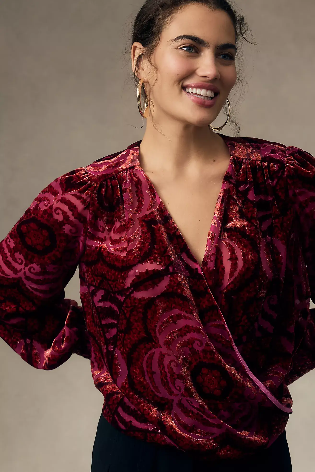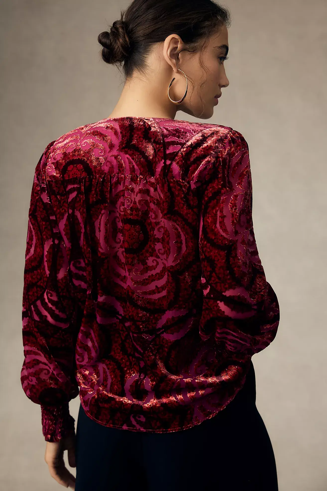 This blouse is absolutely stunning. It is perfectly paired with black, winter white, or dark denim for the holidays.