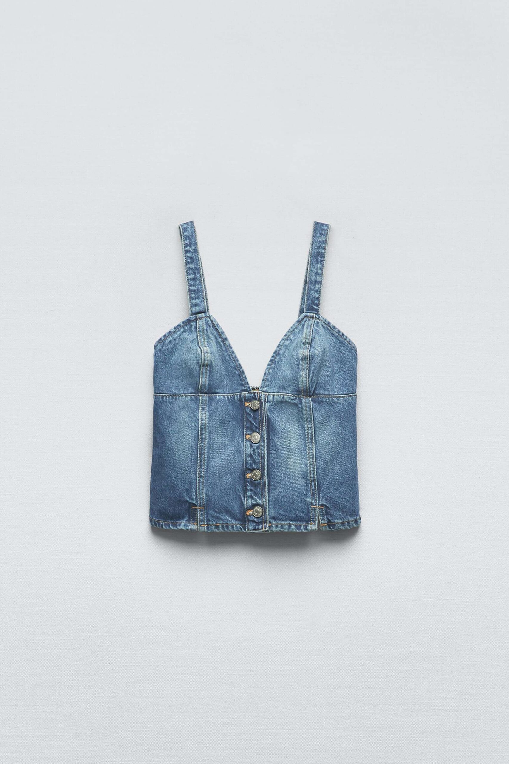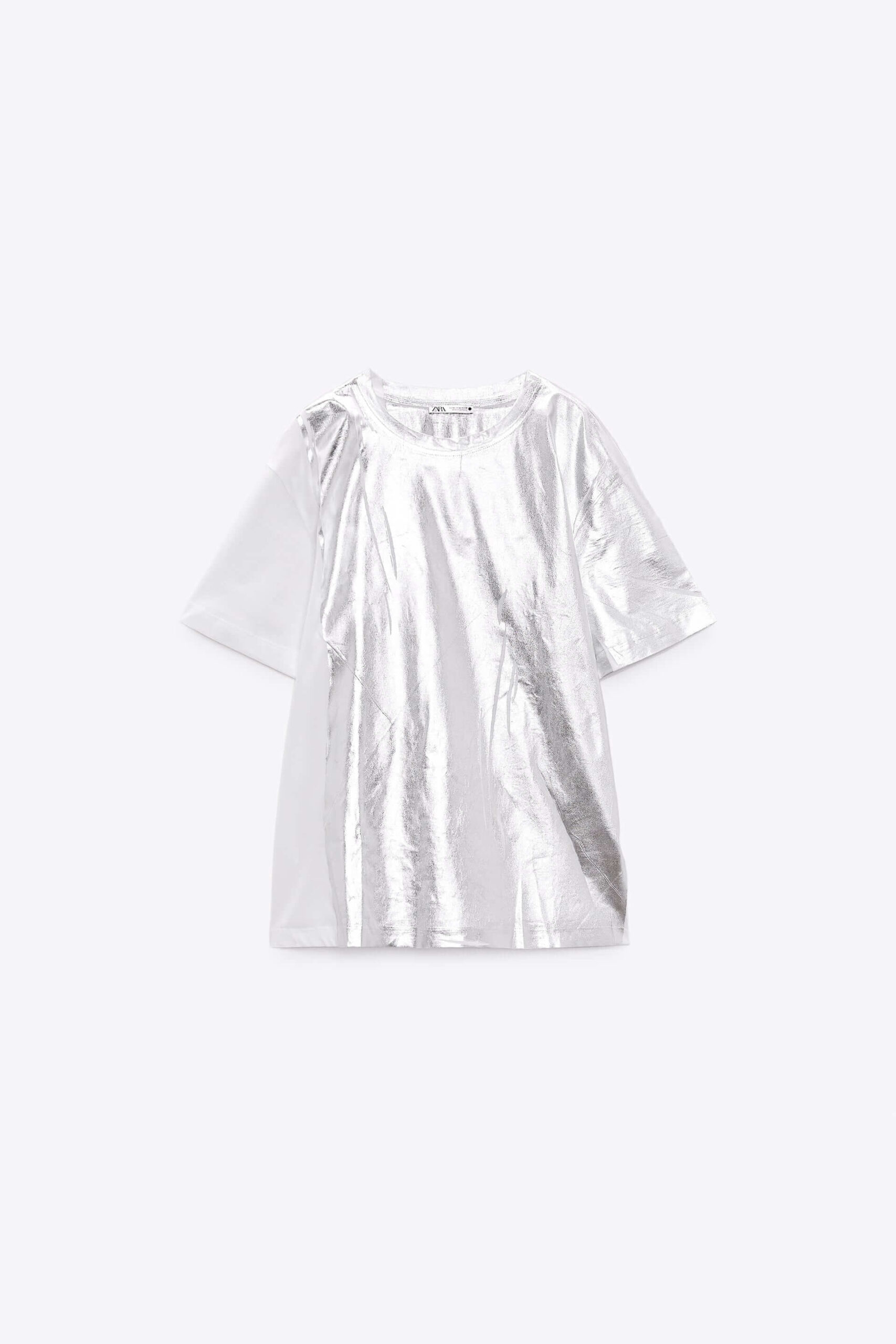 There are countless fabulous tops at Zara right now. Because we had a hard time narrowing it down, we are showing quite a few here. Starting with the two fabulous casual tops below. Denim tanks are trending – we love this sweetheart neckline one! And summer is for tee shirts, but why not make it fun? How about this fabulous silver tee shirt to grab and go all summer long!