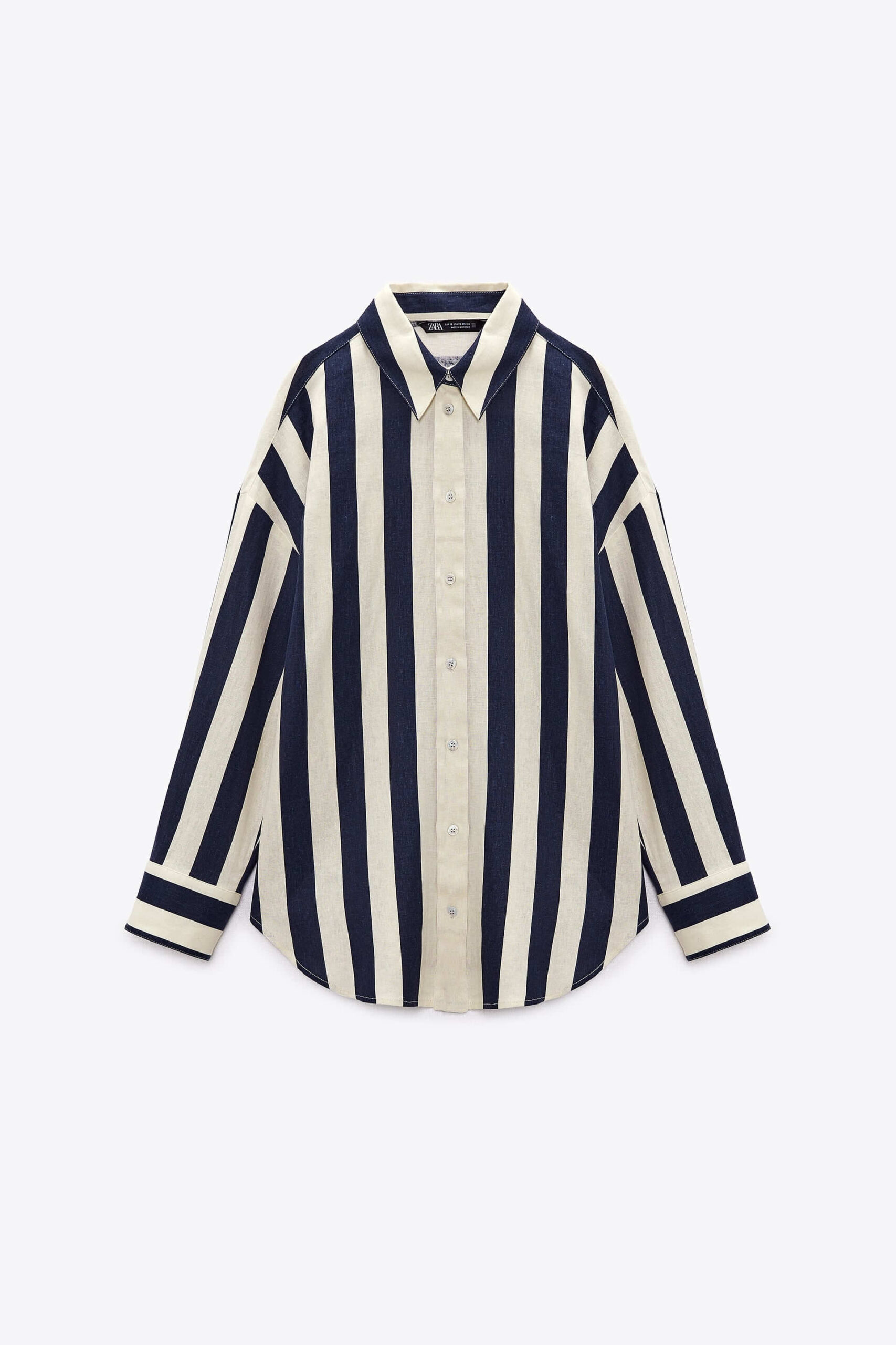 White Linen Button-Up Shirt {Extended Sizing} | Striped Linen Oversized Button-Up Shirt