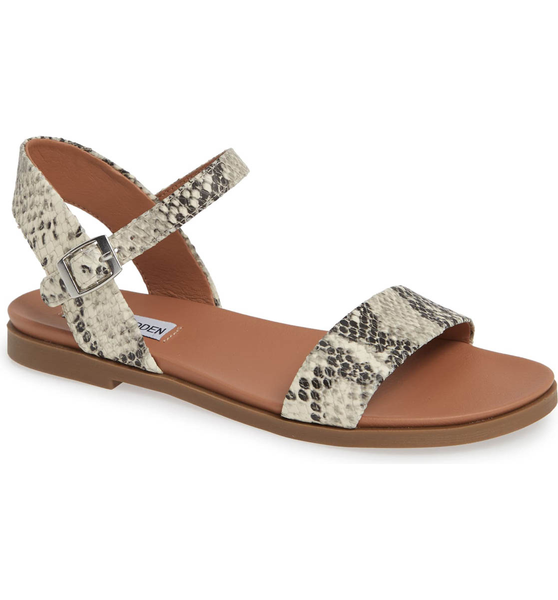 Number Three – The Steve Madden Brenda might literally be the perfect casual wedge sandal. It is comfortable (like can walk miles in it), but yet looks dressy and on point! It comes in this pretty taupe, rose gold, white, gold snake, leopard, and black, depending on the retailer, and it’s currently on sale for $53.96 at Nordstrom. Again, another sandal that we may or may not own several colors of!