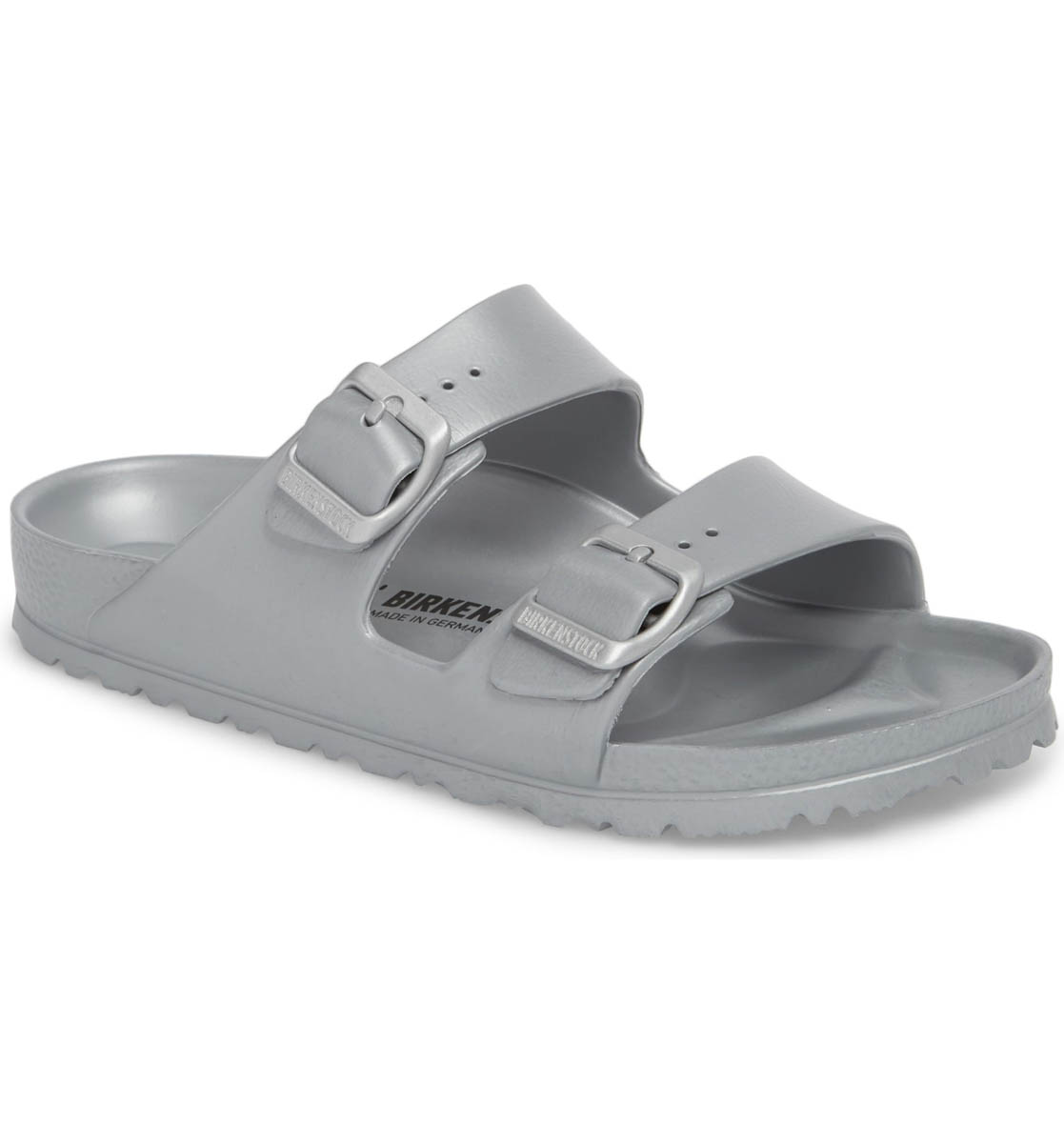 Number Two – Did y’all know that Birkenstock makes a waterproof sandal? There are two different styles to choose from, both modeled after the classic Birkenstock Arizona and Gizeh leather styles. PERFECT for running around town, walking the dog, standing around the pool, or lugging the kids and all of their stuff to the beach. Both of these waterproof slide sandals retail for $44.95.