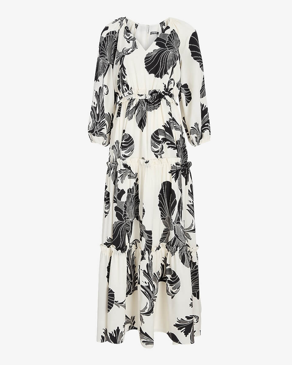 Printed Tiered Ruffle Maxi Dress
