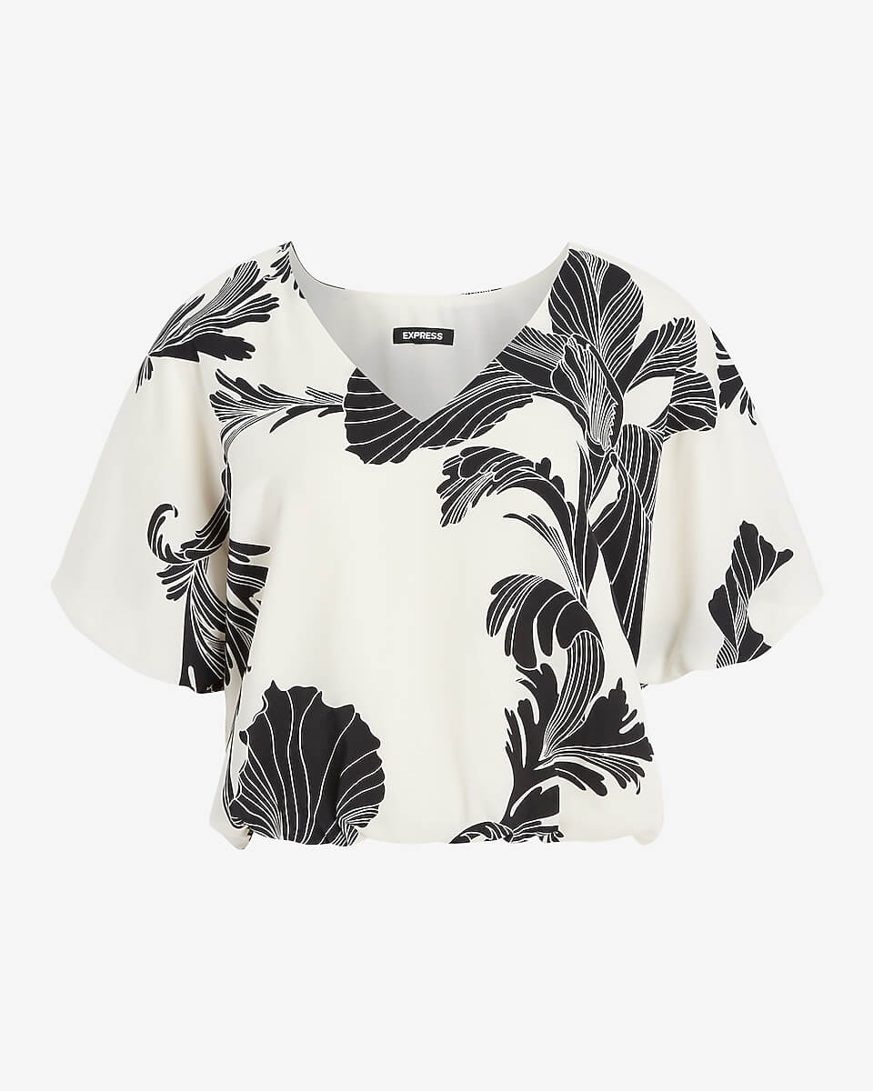 Love the black and white print on this dressy v-neck bubble top. It looks so fabulous paired with black on bottom!