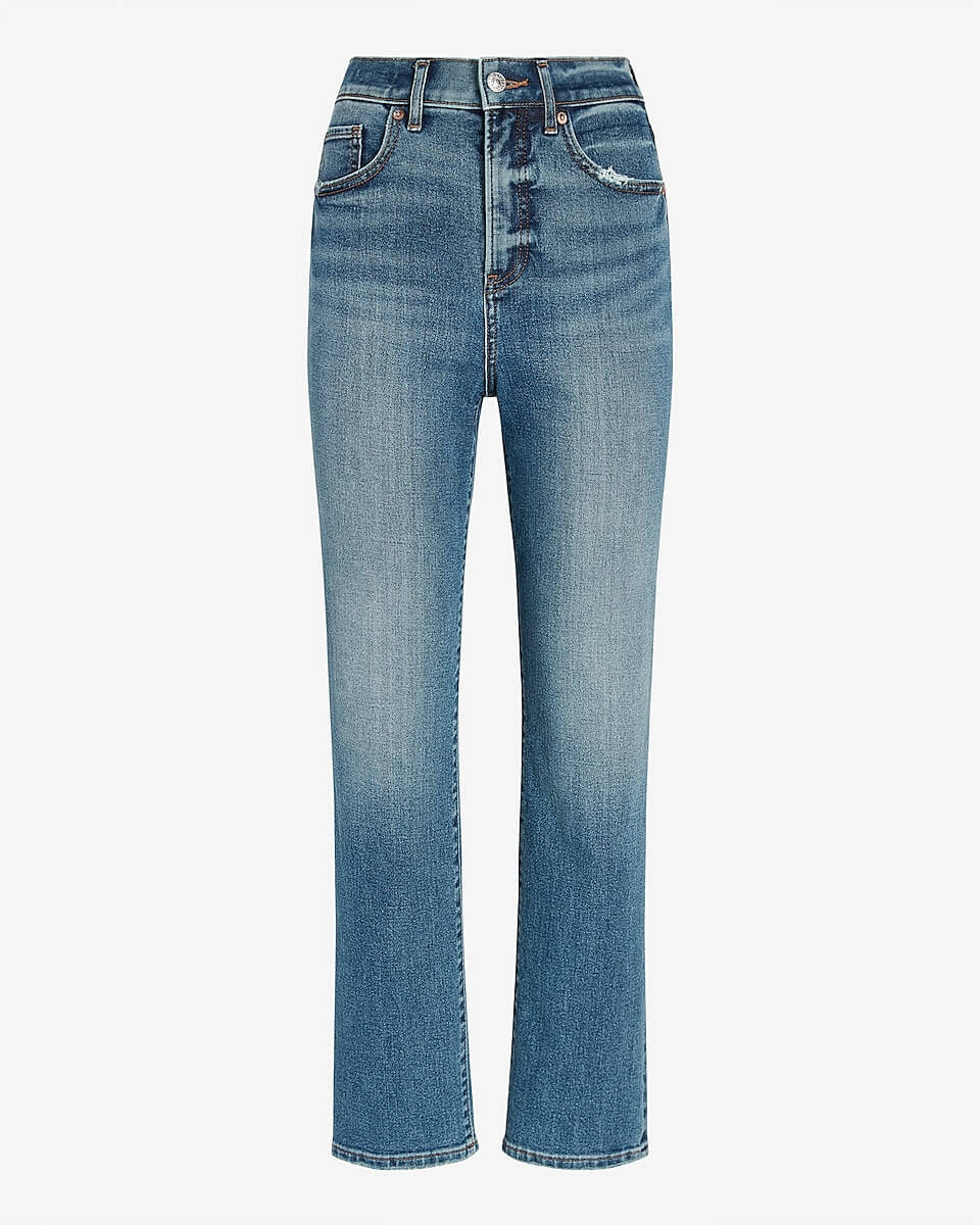 Let’s talk about Express jeans first. We discovered Express jeans last spring and have really come to love certain styles they carry! The price point cannot be beat. Most of their styles come in petite, short, and long sizes, which is a huge plus when we are shopping for clients. In particular, we love their high waisted straight leg denim. Here are our three favorite washes of that jean for fall.