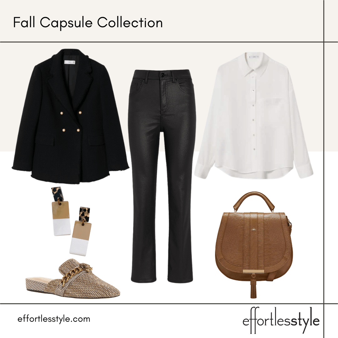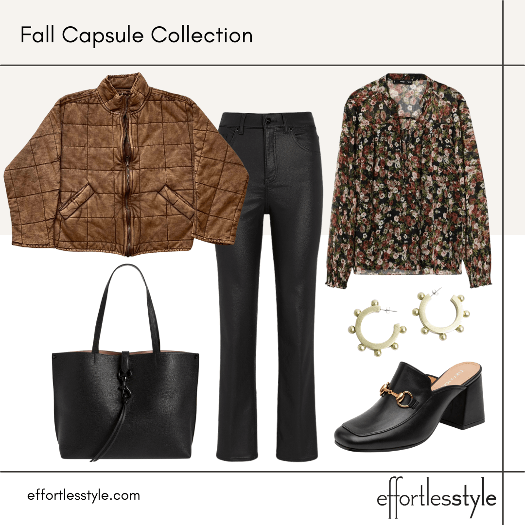 You most likely noticed that many (but not all) of the above looks are from our Fall Capsule. To see and shop it, you can check out our Styled Looks Part 1 and Styled Looks Part 2 blog posts! All of the looks in this blog post are all available on our Like To Know It page. To see the complete set of Fall Capsule content, click on the Fall Capsule Collection on our LTK page! This collection on LTK makes it especially easy to see the content in one place! Here are some of the looks we put together in our capsule with the coated/faux leather jeans…